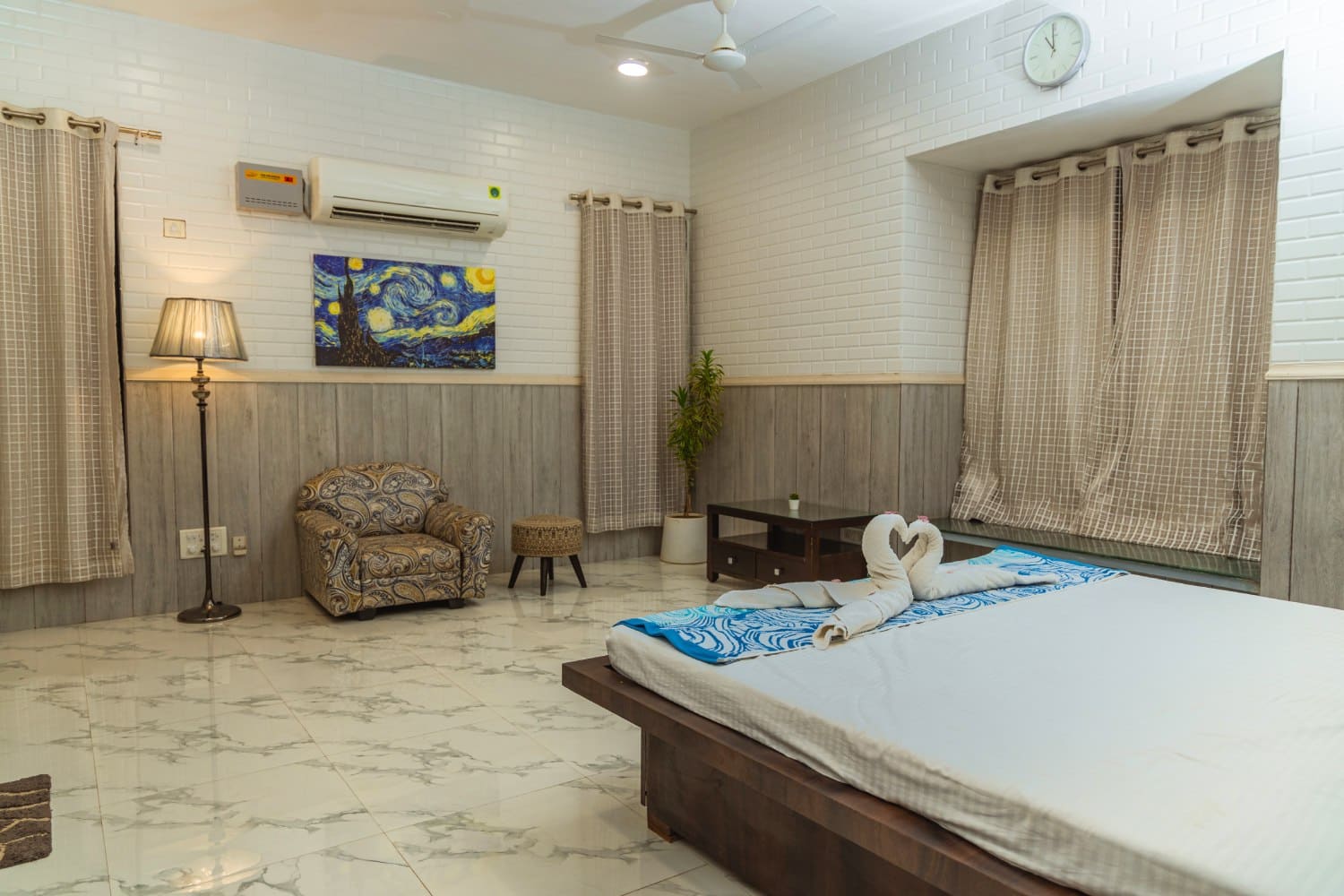 Windy Ridge Villa, a premier destination in Lonavala offers unparalleled luxury and exclusivity. Discover our spacious 4B2HK, 3400 sq. ft. villa nestled on a 12,000 sq. ft. plot. With an expansive open area of 9,000 sq. ft., our villa offers a private retreat ideal for accommodating large groups of 25-35 guests. Additionally, it’s perfect for hosting functions with a capacity of up to 70-75 attendees. This expansive space ensures that you and your guests can enjoy your stay without any intrusion, making it ideal for both leisure and special events.